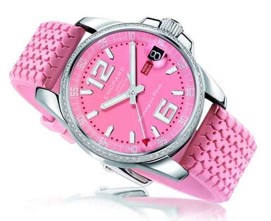 Αυτό το θηλυκό αλλά trendy ρολόι έχει μια διακριτική sporty παρουσία. Μόνο το “Racing in Pink”, όνομα μπορεί να συγκινήσει μερίδα του κοινού. Το σασί από ατσάλι με τολμηρή ροζ εικόνα ενώ και το λουράκι έχει ένα σχέδιο που μοιάζει με αποτύπωμα ελαστικού στο δρόμο.