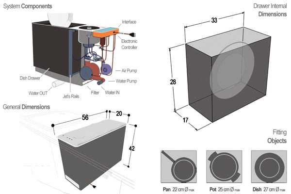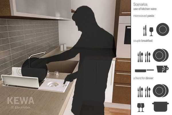 Καθώς λοιπόν είναι μια διαδικασία που ΔΕΝ μπορεί να αποφύγει κανείς, ο μαθητής του σχολείου Domus κύριος Pietro Russomanno σχεδίασε το πρωτότυπο KEWA concept, ένα ακρωνύμιο για τις λέξεις Kinetic Efficient Water Appliance. Στην ουσία, ένα πλυντήριο πιάτων που χρησιμοποιεί πεπιεσμένο αέρα για να κατευθύνει μέσα από ειδικά στόμια jets με νερό το φαινόμενο “λεπίδα νερού” -‘water-blade’, που σημαίνει πως ναι, φεύγει και το ξεραμένο κομμάτι λιωμένης σοκολάτας…