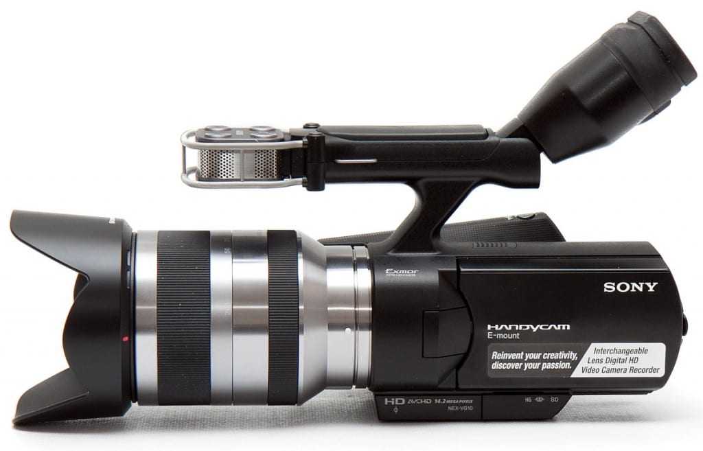 Η πρωτοποριακή NEX-VG10 χρησιμοποιεί τα περισσότερα ηλεκτρονικά συστήματα της compact system camera Sony NEX-5, τον ίδιο αισθητήρα ExmorTM HD CMOS μεγέθους APS-C και το ίδιο σύστημα προσαρμογής φακών E-mount, ώστε να μπορεί αλλάζει φακό. Παρ’ όλα αυτά, η αρχιτεκτονική της συσκευής ευνοεί καθαρά το βίντεο και μάλιστα με ιδιαίτερη απόδοση χάρη στο φορμά AVCHD των 24Mbps».