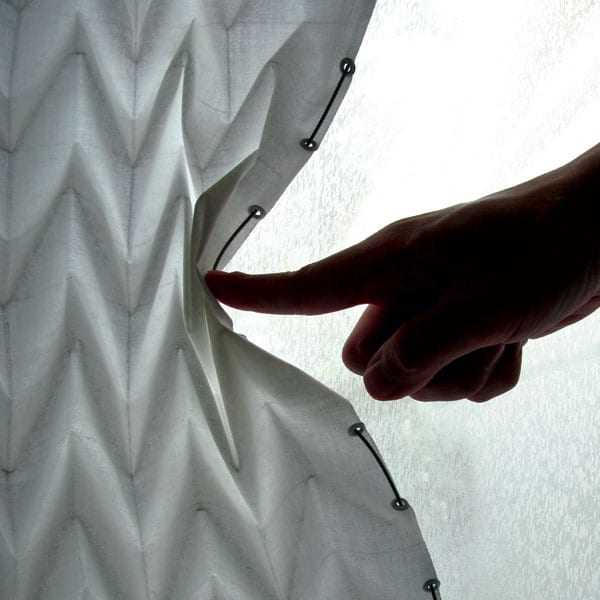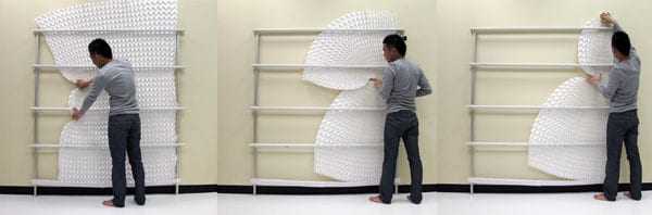 Το Miura Ori screen είναι ένα ελαφρύ, ανθεκτικό και όμορφα σχεδιασμένο παραβάν – θέλετε κουρτίνα; που καλύπτει συστηματικά με ένα σκληρό Miura δίπλωμα μια επιφάνεια. Το Miura fold μπορεί δε να μαζέψει σε μια επιφάνεια όσο ένα από τα τμήματα του. Με ελάχιστο πάωος και απίστευτα μικρό βάρος.