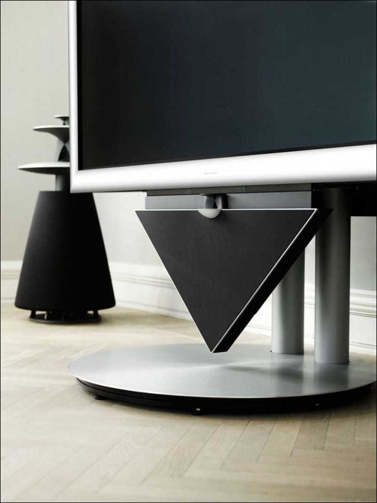 Το σύστημα BeoVision θα έρχεται με το τριγωνικό κεντρικό ηχείο BeoLab 10 και σταντ με μοτέρ που κατεβαίνει όταν δεν χρησιμοποιείται.