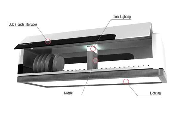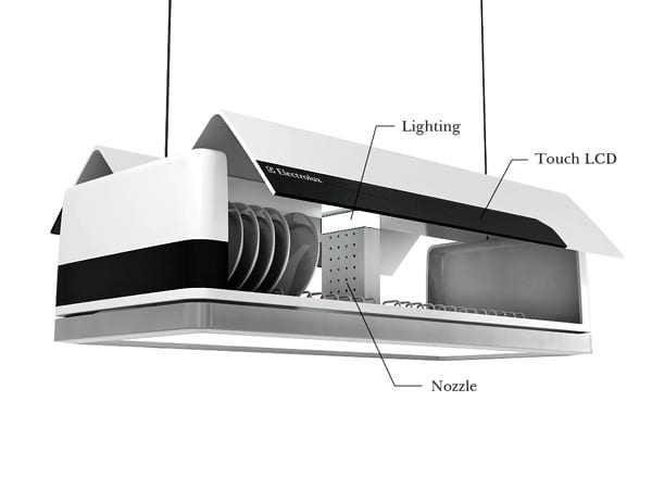 Κι όμως είναι ένα πλυντήριο πιάτων που συνδυάζεται με ένα φως για τραπέζι δείπνου. Η ιδέα είναι να υπάρχει ένα λειτουργικό φως που έχουμε ανάγκη για τις λίγες στιγμές που αισθανόμαστε… άνθρωποι ενώ γλυτώνουμε και χώρο. Το μηχάνημα – πρωτότυπη σχεδίαση για την ώρα, μας βοηθά να έχουμε άμεση πρόσβαση σε έναν χώρο όπου διαρκώς μπαίνουν πιάτα και μαχαιροπήρουνα. Ενσωματώνει τεχνολογίες για κάθαρση νερού και επαναχρησιμοποίηση του και δεν χρειάζεται παροχή.