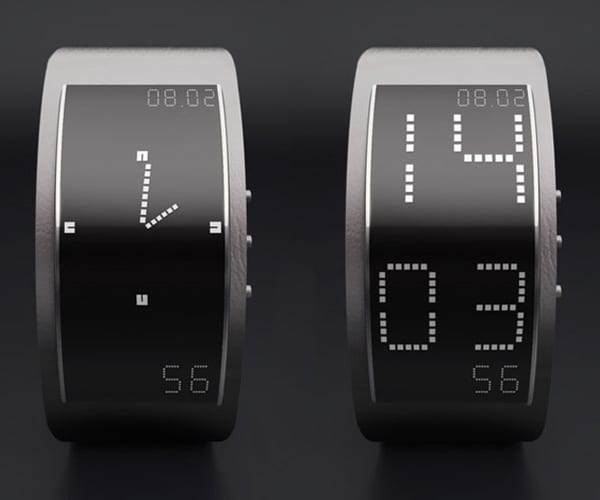 Η αρχική ιδέα του από τον κύριο Julien Bergignat, τώρα σε πιο σπορ έκδοση. Με επιλογές εικόνας από αναλογικές και ψηφιακές ενδείξεις. Μεγάλο πλατύ ‘μέτωπο’ και ενσωματωμένες apps. Είναι ένα ρολόι με εύκαμπτη οθόνη και ‘κοινωνικής δικτύωσης!