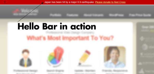 Οι δημιουργοί της Hello Bar, μιας πολύ απλής σχεδίασης που μπορεί ο καθένας να χρησιμοποιήσει σε ένα site, είπαν στο Mashable πως η εταιρία έχει δει να χρησιμοποιούνται περισσότερες από 200 εκατομμύρια Hello Bars για να βοηθηθεί η Ιαπωνία.