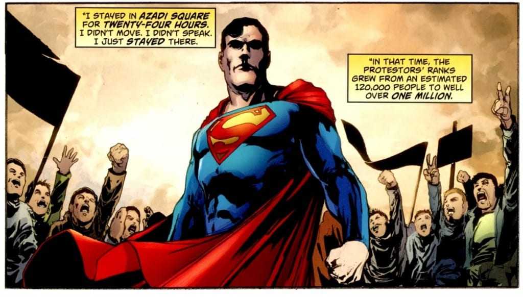 Σε μια θλιβερή, αν και ‘ριζοσπαστική κίνηση ειδικά αν σκεφτεί κανείς την ιδεολογία των δημιουργών του Superman Jerry Siegel και Joe Shuster, που ονειρεύτηκαν τον Superman για την Action Comics το 1938. Τότε τον έθεσαν ως Αμερικανό ήρωα και προστάτη κατά της τυραννίας.