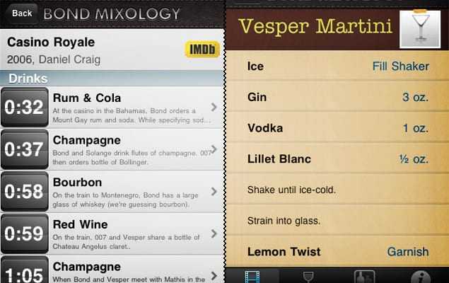 Η λύση είναι το steps νέο ενδιαφερόν δημμιούργημα του κόσμου των apps, η e Bond Mixology App ($2).