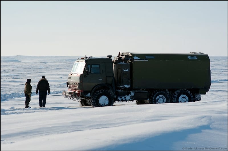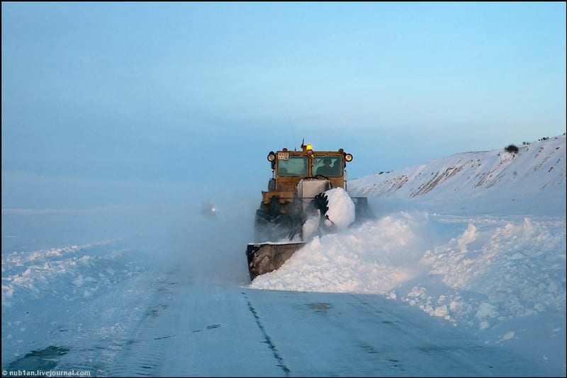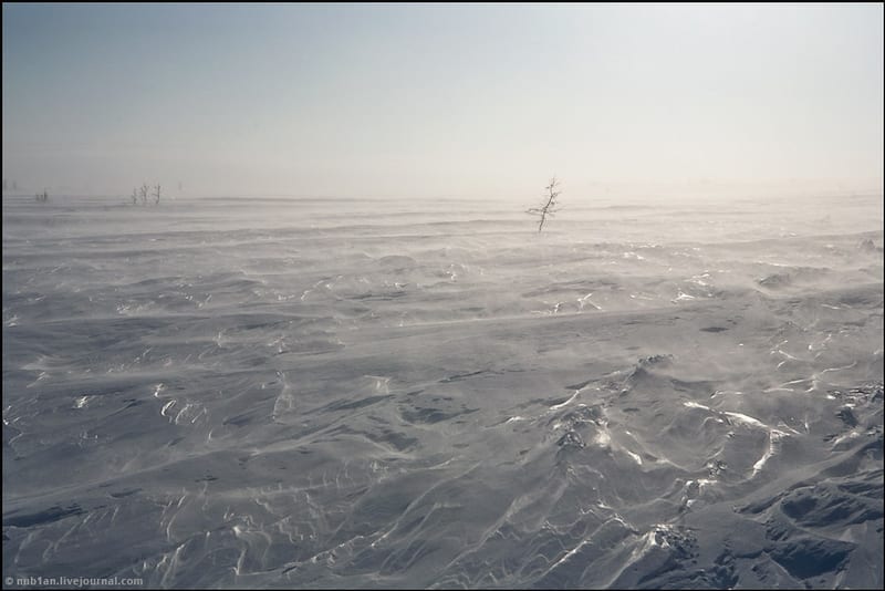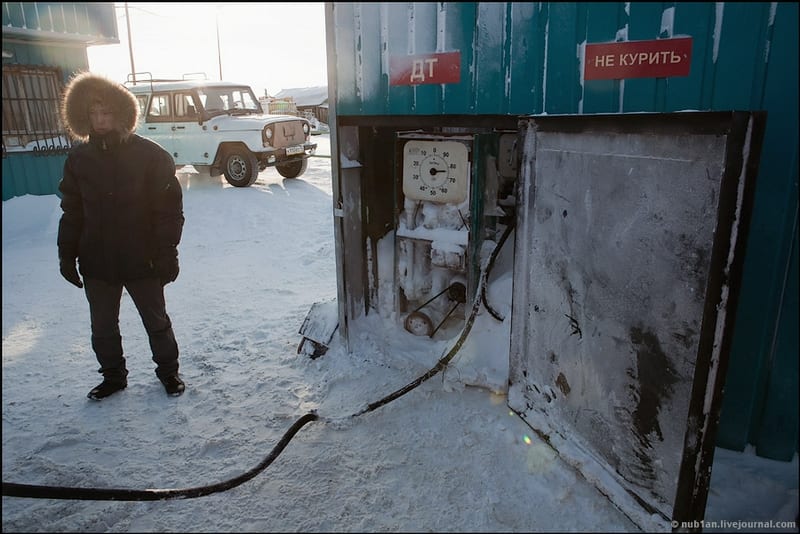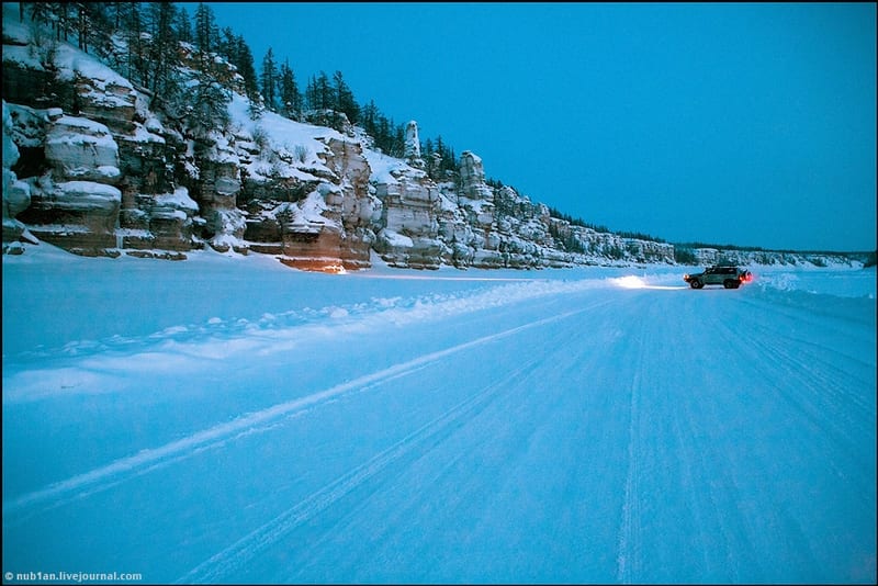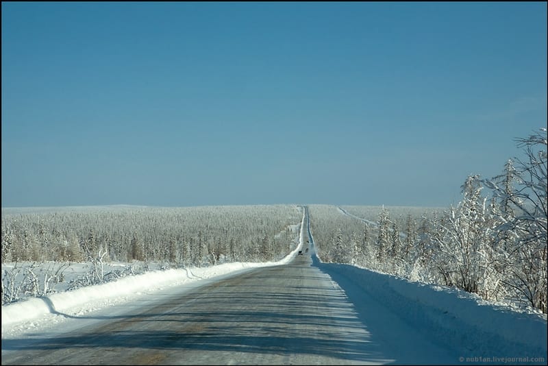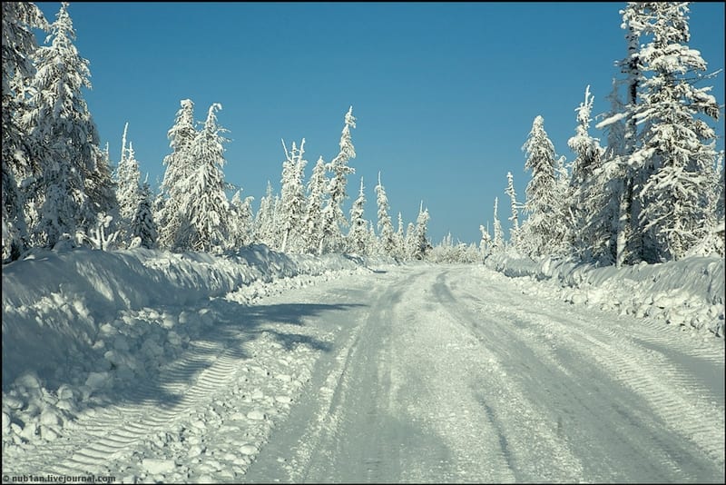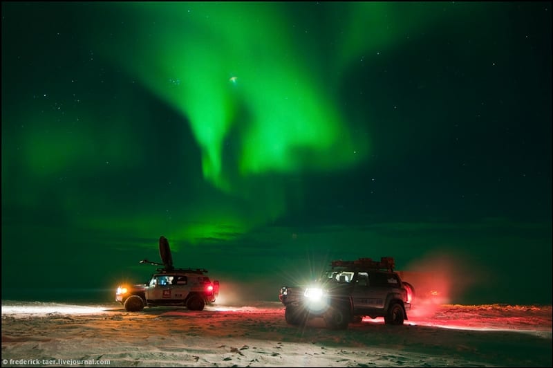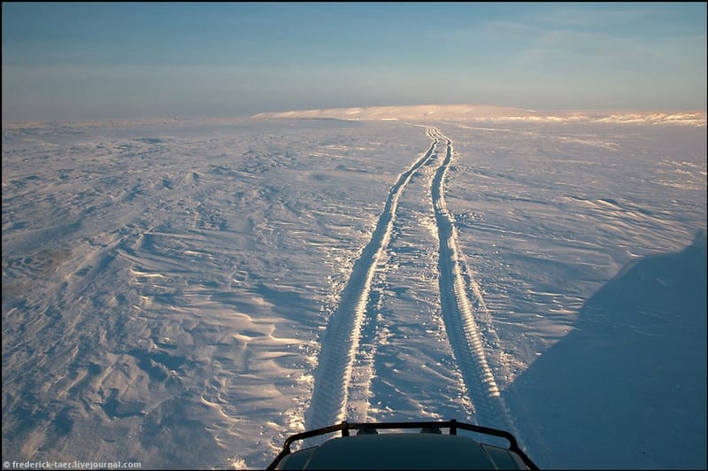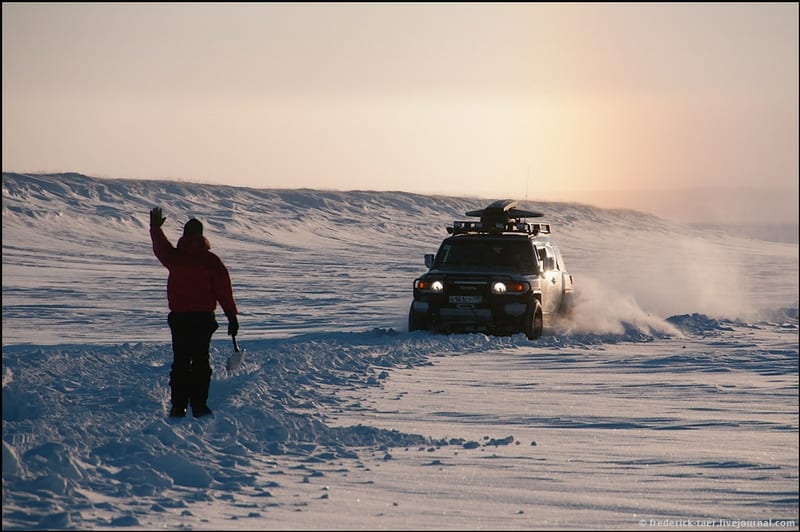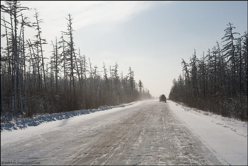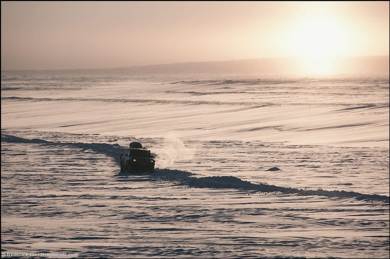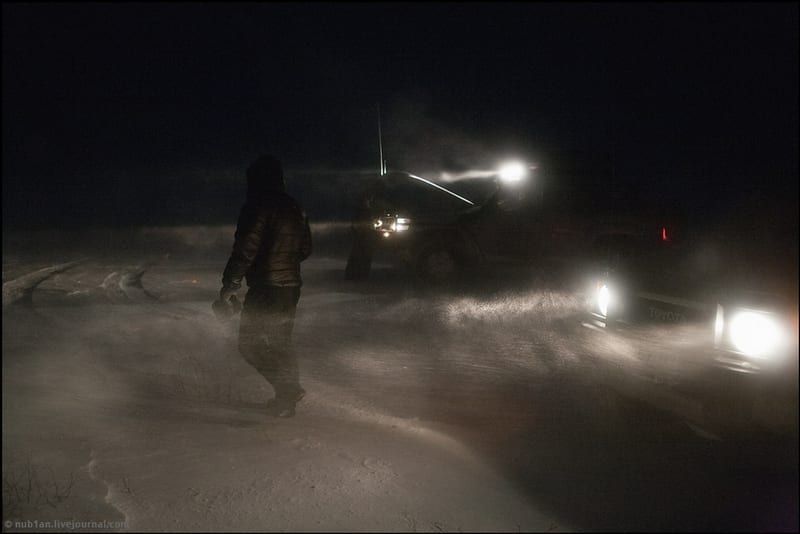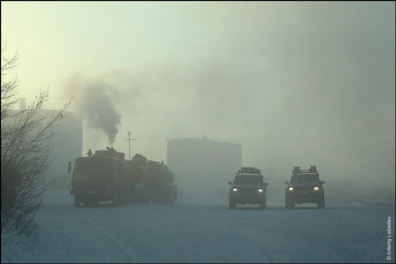 Καθώς νυχτώνει κάνει κρύο. Πραγματικό κρύο. Θερμοκρασίες στα -43… -45 º C. Όταν η δρόμος κατηφορίσει θα πάει στους -50 º C. Απομονωμένες, ΠΡΑΓΜΑΤΙΚΑ απομονωμένες περιοχές, μοναδικά στιγμιότυπα και, μια και είμαστε στο gadgetfreak.gr, πραγματικά μοναδικά οχήματα κάθε τύπου!