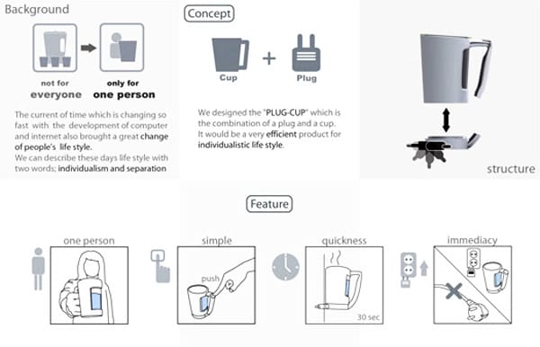 Το δημιούργημα αυτό με την ονομασία Plug Cup είναι σίγουρα κάτι που θα λατρέψουν οι… τεμπέληδες. Τέλειο για άμεση παρασκευή καφέ και πράσινου τσαγιού.
