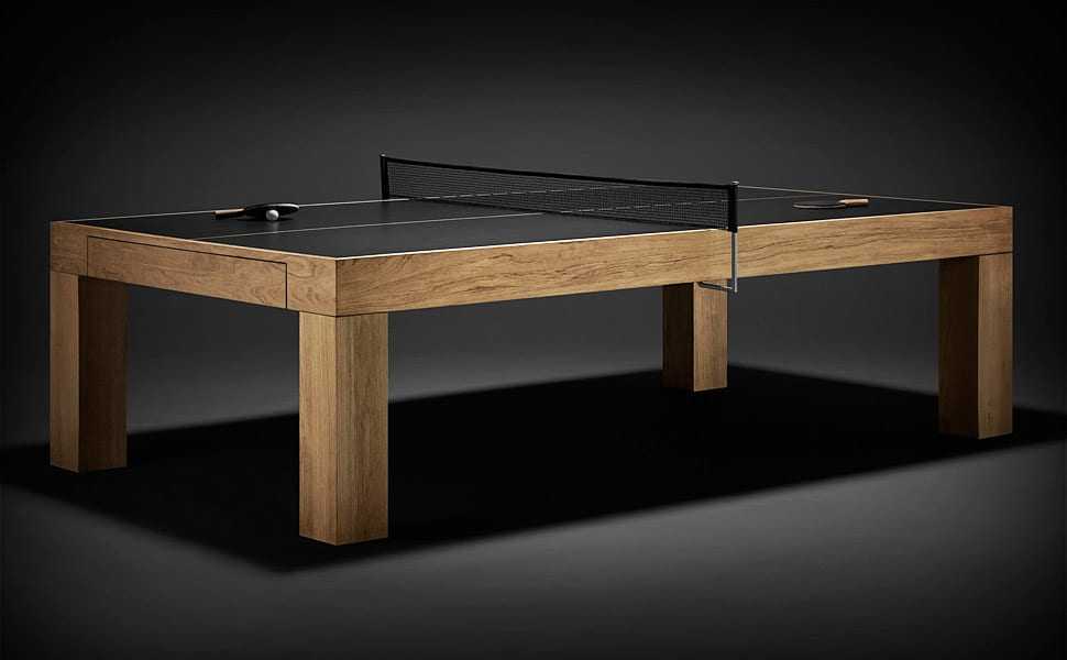 Είναι ένα κανονικό τραπέζι που πληρεί τους κανονισμούς είναι αυτό, κατασκευασμένο από ξύλο τικ και με κρυμμένο ράφι για τα… εξαρτήματα του σπορ.