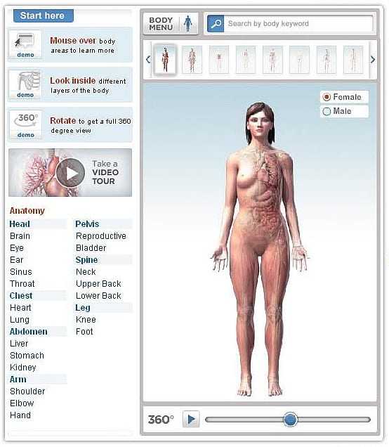 Εκτός από το να παρέχει σε ασθενείς τη δυνατότητα να μάθουν περισσότερα για την ανατομία, το site είναι και γεμάτο με link για βίντεο κοινών ασθενειών που έχουν σχέση με το τμήμα του σώματος που διαλέγεις.