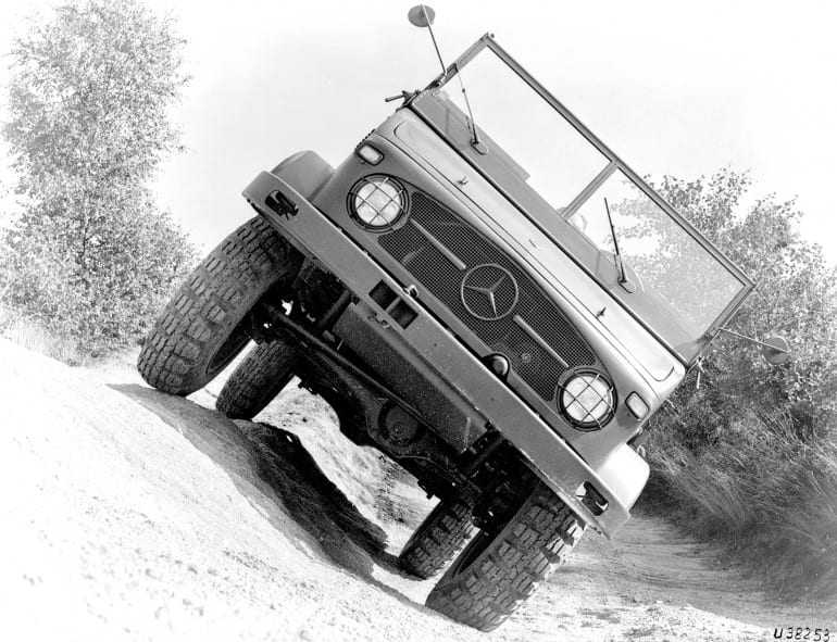 Το όχημα δε που βλέπετε, φουτουριστικό και εντυπωσιακό είναι αλήθεια, έχει και τη βάση του στο πρώτο Mercedes Unimog παραγωγής. Το όχημα είχε βγει από τη γραμμή παραγωγής στις 3 Ιουνίου 1951 και ήταν επίσης cabrio (!). Ήταν όντως… πράσινο όπως και κάθε όπως και κάθε Unimog τα επόμενα χρόνια.