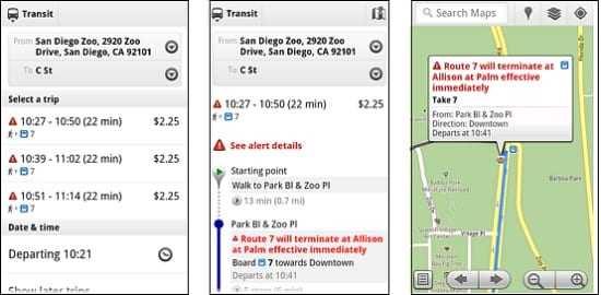 Σύμφωνα με το Google blog, “When you click on a transit station or plan a transit route with Google Maps and there are delays or alerts related to your trip, you’ll now see “live departure times” (indicated with a special icon) and service alerts.”