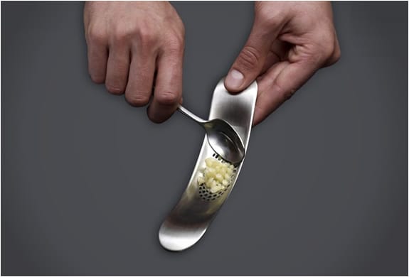 Εκτός από όμορφο το Rocker garlic crusher, είναι και πρακτικό. Σύμφωνα με τον εφευρέτη του μπορείς να συνθλίψεις το σκόρδο να το ρίξει στην κατσαρόλα ή το τηγάνι και να μην χάσεις καθόλου ποσότητα. Ενώ όταν έρθει η ώρα για να πλύνεις τα χέρια σου απλά τα τρίβεις στο πίσω μέρος και εξαφανίζεται η μυρωδιά!