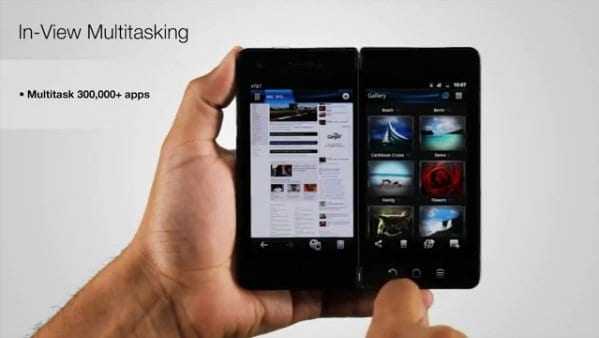 Όπως φαίνεται τρέχει λειτουργικό Android 2.3 Gingerbread αντί για το 2.2 Froyo – που ήδη το κάνει πιο ελκυστικό. Επιπλέον υπάρχει μια οθόνη 4″ σε κάθε μισό ενώ μαζί δίνουν εικόνα 6″ – μια ίντσα πριν από ένα 7άρι tablet. Δεν είναι κακό.