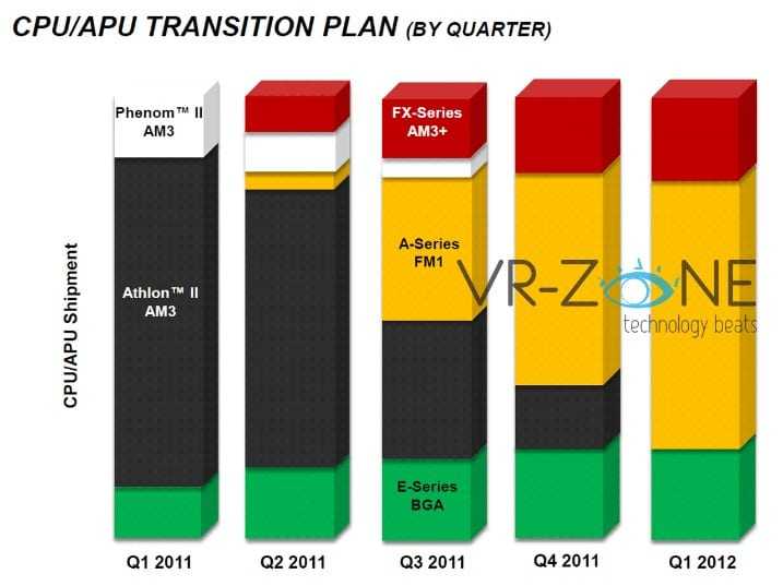 Σύμφωνα με ένα slide που διέρρευσε στο VR Zone το μερίδιο του AM3 socket και των συμβατών Athlon II και Phenom II επεξεργαστών στις συνολικές πωλήσεις της AMD πέφτει στο μισό το 3ο τρίμηνο. Η τάση θα συνεχίσει το 4ο τρίμηνο με τις A-Series APU να έχουν την πρωτοκαθεδρία και ο ‘παλαίμαχος’ AM3 Athlon II να μην υπάρχει πλέον το πρώτο τρίμηνο του 2012.