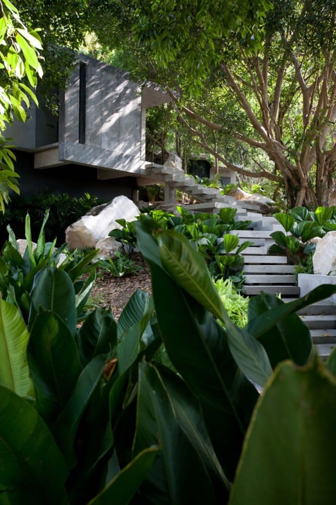 Τοποθετημένο στην άκρη του μεγαλύτερου εθνικού πάρκου της Ταϊλάνδης, το Kaoyai National Park, το Hilltop House ουσιαστικά γίνεται ‘ένα’ με το σκηνικό, γεμάτο με πέτρες και απίστευτο, πανέμορφοlandscape. Το Hilltop House είναι ένα μικρό σχετικά σπίτι σε ένα οικόπεδο των 8.000 τ.μ.