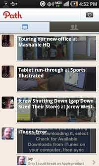 Σε αντίθεση με άλλα κοινωνικά δίκτυα, το Path περιορίζει στα 50 άτομα τον κύκλο των ατόμων που έχεις στην παρέα αλλά μπορεί να γίνει και cross-post με updates στο Facebook. Ουσιαστικά δηλαδή έχουμε την επιλογή να ‘μοιραστούμε’ με περιορισμένο όγκο ανθρώπων τα updates στο Path.