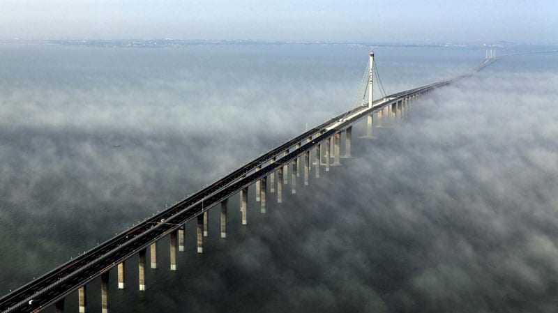 Ναι, και εδώ μάχονται για την πρωτιά, για να δείξουν την ισχύ τους. Είναι η γέφυρα Jiaozhou Bay στην Κίνα και αυτό είναι ένα βίντεο με το τέρας των 26.2 μιλίων. Είναι η γέφυρα που ξεπέρασε την κατασκευή στη Λίμνη Pontchartrain Causeway στη Louisiana κατά τρία μίλια – στον ίδιο τύπο κατασκευής γιατί έχει πολλές κατηγορίες…