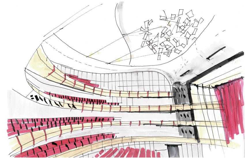 Κάτω από το πάρκο, δύο κτίρια συνδυάζουν το ρευστό και το γυαλί και δημιουργείται μια αστική Αγορά – σημείο συνάντησης και θύρα για τη Βιβλιοθήκη και την Όπερα.