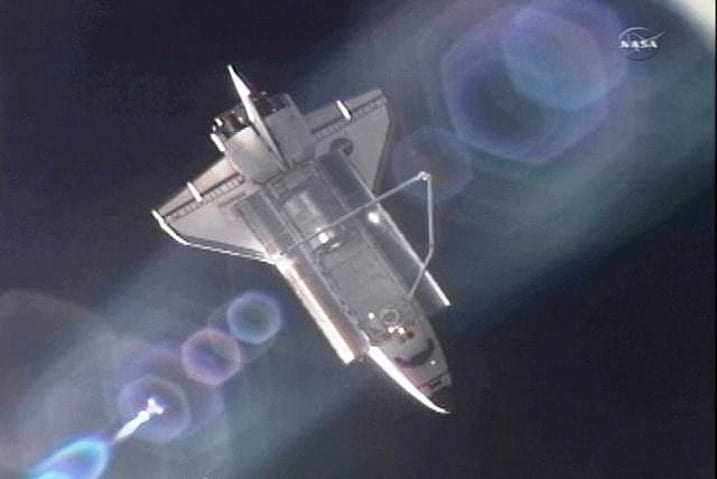 Το δε Atlantis πέταξε τη μισή διαδρομή από τον Σταθμό και οι κάμερες πάνω και στα δύο σκάφη πήραν φωτιά για να εγγράψουν το ιστορικό γεγονός.