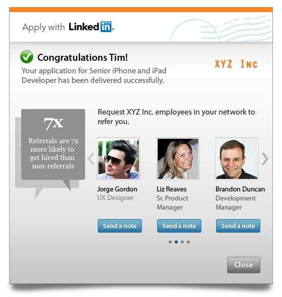 Για εκείνον που ζητά δουλειά, μπορεί να επιταχυνθεί η διαδικασία με χρήστες να μπορούν να εργαστούν μέσα σε δίκτυο επαφών τους και να αιτηθούν από εκεί συστατικών επιστολών.