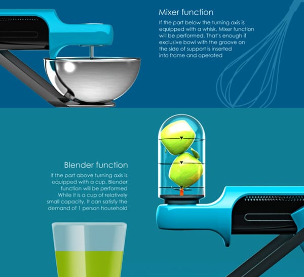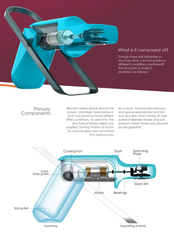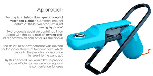 Το Revolvy 2in1 έχει ένα περίεργο σχήμα για ένα blender και mixer. Όταν δεν χρησιμοποιείτα απλά διπλώνει σε μια διακριτική συσκευή που κρεμιέται και ελευθώνει χώρο πολύτιμο στον πάγκο…