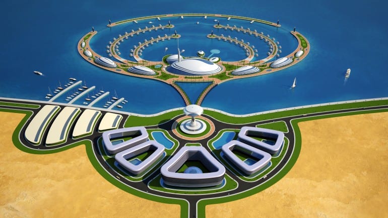 Η Ιταλική αρχιτεκτονική εταιρία Giancarlo Zema Design Group (GZDG) έχει σκεφτεί το Amphibious 1000, ένα αξίας $500 εκατομμυρίων ημι-βυθισμένο σχέδιο για τη δημιουργία resort σε μια προστατευμένη περιοχή στο – που αλλού… – Κατάρ.