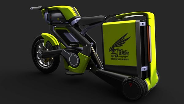Σχεδιασμένο για χρήση σε σύντομες αποστάσεις. Με δυο τροχούς και χρήση πεπιεσμενου αέρα! Το ετοίμασε ο κύριος Jurmol Yao που φαντάζεται το Transport Hornet σαν μέσο μετακίνησης για δουλειές όπως το ταχυδρομείο με συχνές στάσεις.