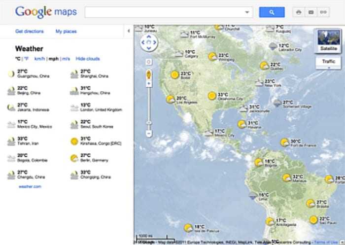 Έτσι δεν είναι παράλογο πως το Google Maps αρχίζει να δίνει λοιπόν πλέον και πληροφορίες για τον καιρό. Όπως λέει το επίσημο Google Blog θα υπάρχει πλέον στη δημοφιλή εφαρμογή και ένα “…weather layer” που δεν θα δείχνει πλέον μόνο πληροφορίες καιρού για την περιοχή σου αλλά για όλη την υδρόγειο.
