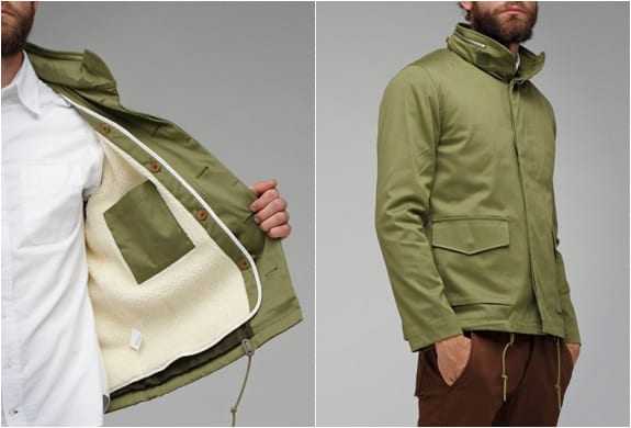 Είναι ένα πολύ ‘καθαρό’ σε γραμμές jacket με military ιδέες από βαμβάκι και συνθετικά υλικά.