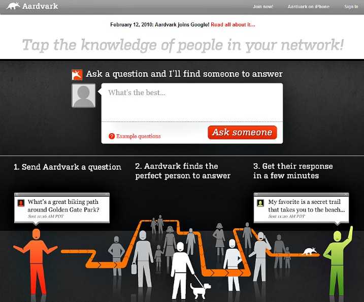 Ο Google CEO κος Larry Page ανακοίνωσε το τέλος πολλών projects της Google αλλά και το κλείσιμο του Aardvark, μιας start-up που απέκτησε η Google το 2010 όταν πειραματίζονταν με το social search. Το όλο concept του Aardvark ήταν να βοηθήσει να έχουμε απαντήσεις σε ερωτήσεις με το να ψάχνουμε το πιο σωστό άτομο στο Web για να τις δώσει.