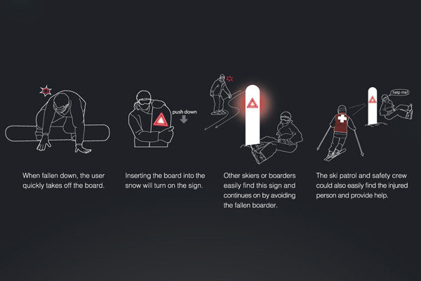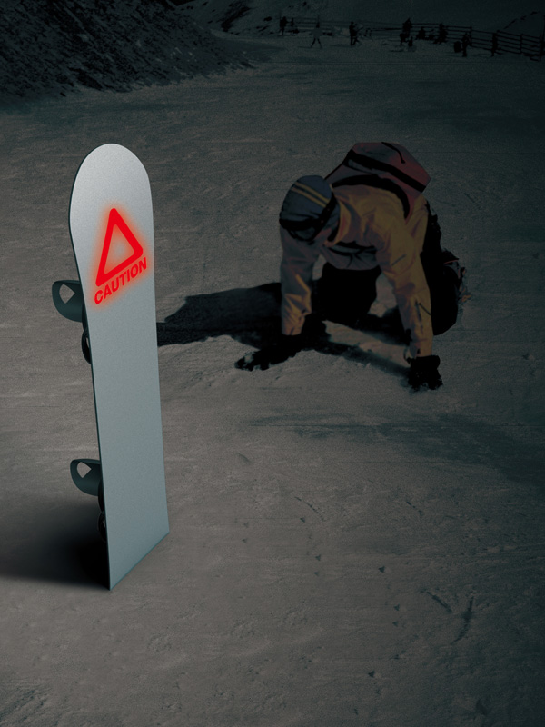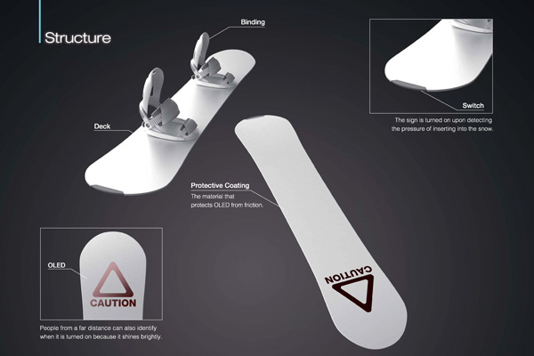 Ωραίες οι τρέλες στα βουνά, αλλά τι γίνεται με την ασφάλεια; Δείτε τι έξυπνο αυτό το δημιούργημα μιας τριπλέτας σχεδιαστών. Ένα snowboard με ένα “OLED Safety Light” στην επιφάνεια του. Το φως ενεργοποιείται εύκολα και δεν δημιουργεί διατάραξη της προσοχής στο snowboarding.