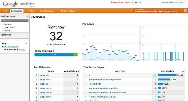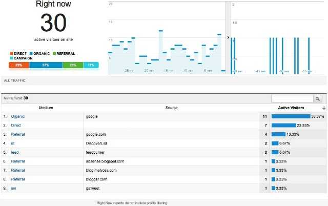 Το σύστημα για πρώτη φορά δίνει real-time web traffic με το εργαλείο που ονομάζεται Google Analytics Real-Time.