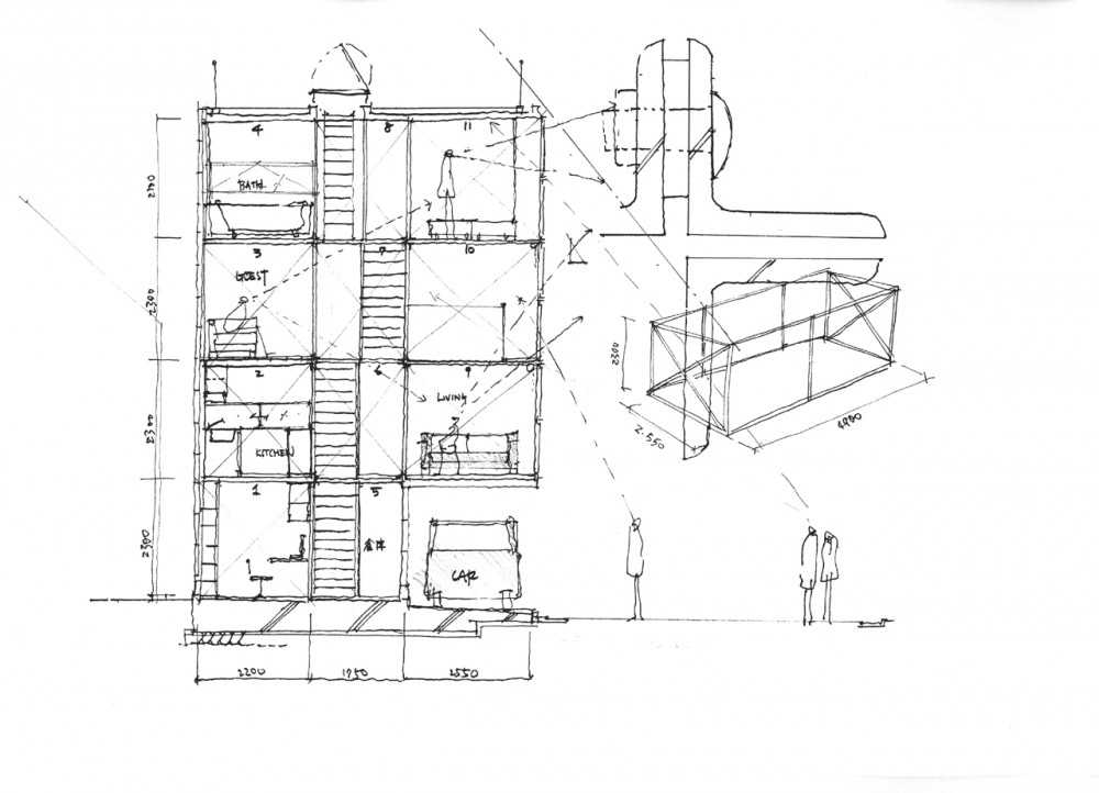 Ποιος ο στόχος; Να υπάρχει όσο περισσότερος χώρος. Και έτσι επιλέχθηκε η δομή που βλέπετε. Μια απλή κατασκευή με ένδεκα κουτιά από ατσάλι για τη βασική δομή, αλλά και εξωτερικά πάνελ.