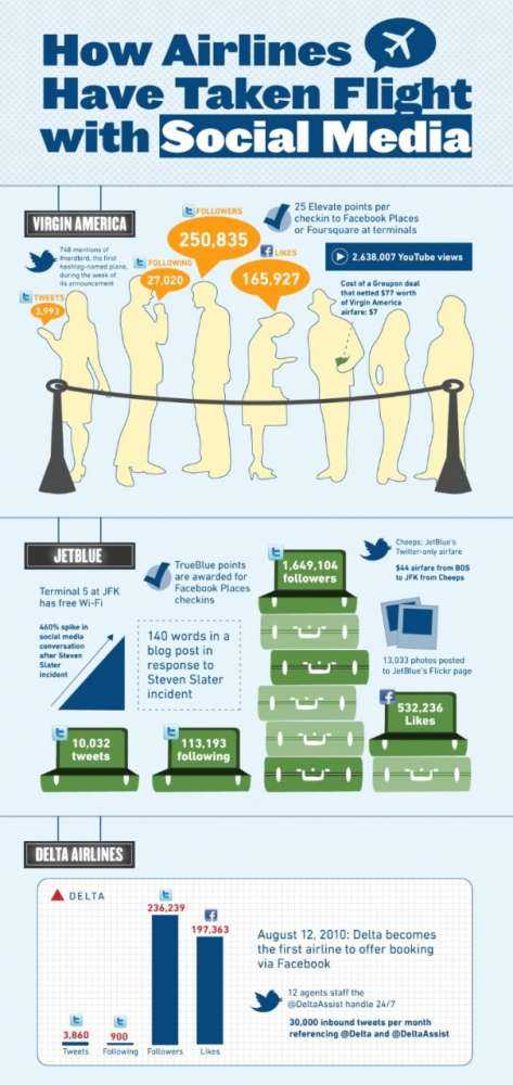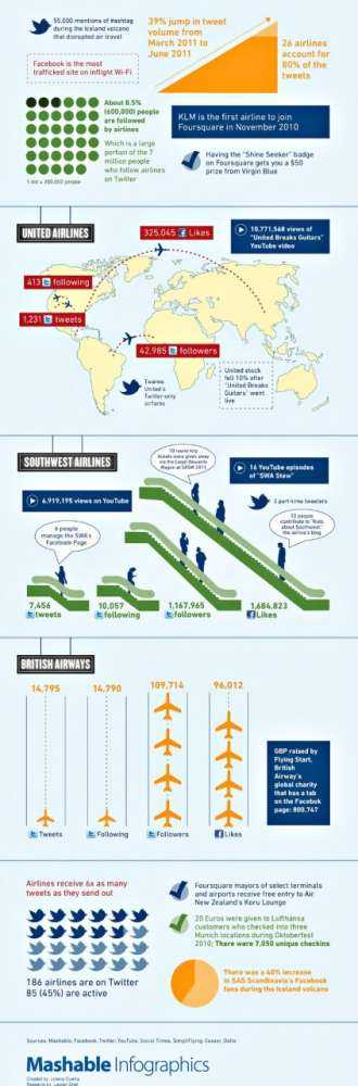 Πόσο social media έχουν γίνει όμως τα αεροσκάφη; Τι κάνουν για να εκμεταλλευτούν το social web, τα Twitter και Facebook ώστε και οι εκατομμύρια επιβάτες να είναι πιο ικανοποιημένοι; Ένα ενδιαφέρον infographic έχει απαντήσεις…