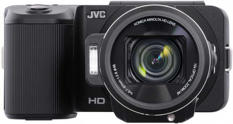 Τι θέλει να κάνει – ή να ‘πει’, η JVC με την GC-PX10; Άγνωστο, αλλά κάτι διαφορετικό σίγουρα είναι αν και πολύ… άκομψο. Τα χειριστήρια πίσω στο σώμα και μπροστά στο housing του φακού, στη μια πλευρά ένα ψηφιακού SLR-like PASM mode dial, το χειριστήριο εστίασης/έκθεσης και το κουμπί power αλλά και ένας χώρος interface για εξωτερικό μικρόφωνο, HDMI-out και USB 2.0. Στην άλλη πλευρά θύρα SD/SDHC/SDXC media card και ενσωματωμένο flash.
