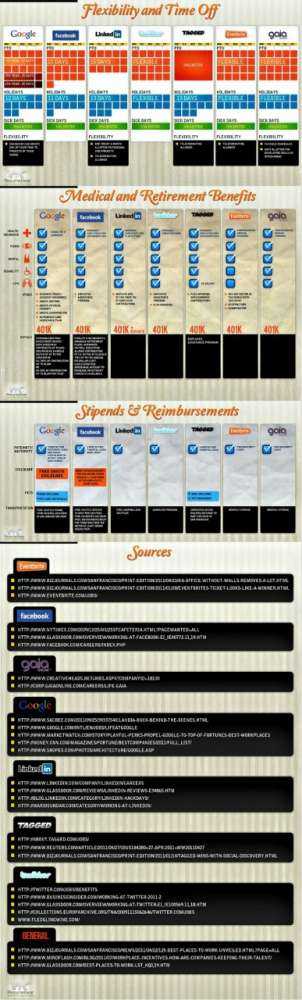 Ναι, ο κόσμος είναι σε κρίση αλλά η Silicon Valley είναι στα καλύτερα της με γυμναστική, ταξίδια, παροχές κάθε τύπου. Δείτε στο παρακάτω infographic θα θετικά των μεγάλων εταιριών και (μη) συγκρίνετε.