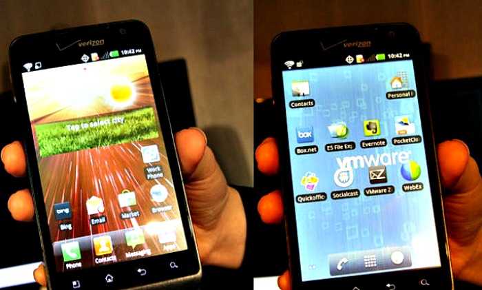 Η μετάβαση από το ένα περιβάλλον στο άλλο γίνεται με κλικ σε ένα εικονίδιο (Work Phone icon) ενώ στις ΗΠΑ το VMware συνεργάζεται με την εταιρία Verizon Wireless/