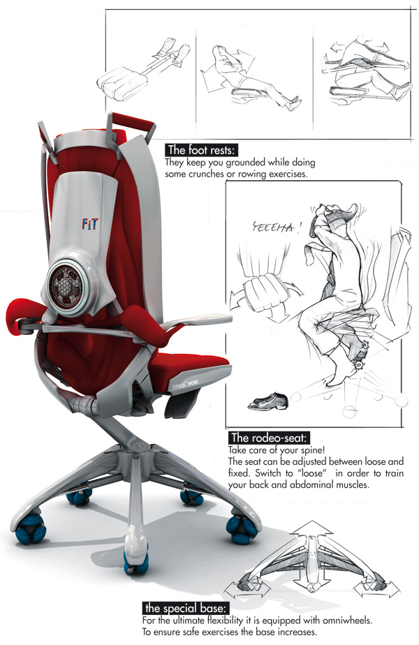 Αν είστε, όπως πολλοί, ‘σκλάβοι’ της καρέκλας, τότε θα εκτιμήσετε αυτό το σχέδιο. Ονομάζεται Fitness@Work και είναι η μια καρέκλα που μπορεί να δώσει μια λύση για την άσκηση των χεριών και όχι μόνο. Δείτε το. Έχει ενδιαφέρον…