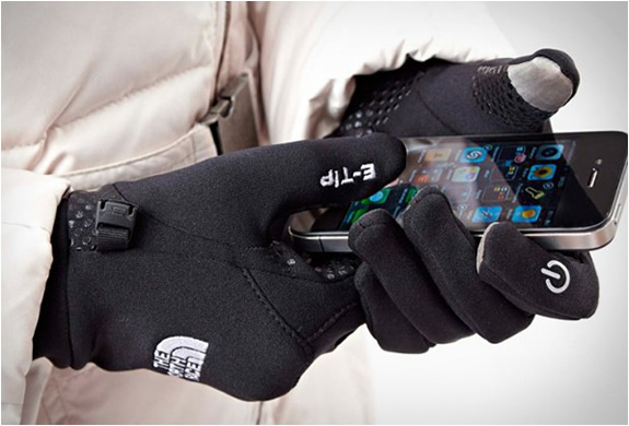 Τα Etip gloves της The North Face υπόσχονται και να κρατούν τα χέρια μας ζεστά και να είναι συμβατά με οθόνες αφής για να λειτουργούμε τις συσκευές μας στο κρύο. Αδιάβροχα και με την τεχνολογία Xstatic επιτρέπουν να λειτουργεί η αφή ενώ έχουν και αντιολισθητικά μέρη στις παλάμες.