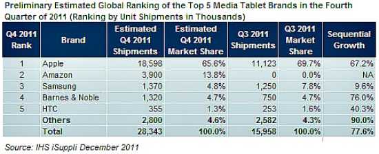 Η εταιρία αν πάει έτσι θα έχει το 13.8% του μεριδίου της αγοράς και συνολική αύξηση για το 2011 στις πωλήσεις tablet να είναι σε άνοδο κατά 7.7 από 64.7 εκατομμύρια tablet που θα έχουν πουληθεί μέχρι το τέλος της χρονιάς.