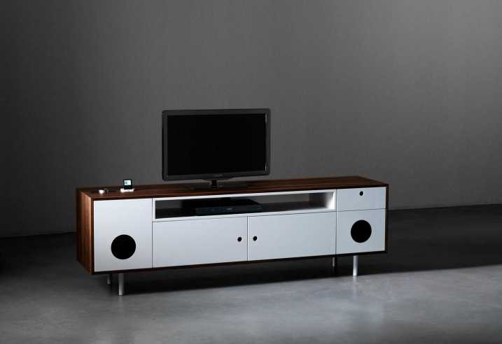 Από την άλλη εδώ έχουμε και ipod/tv σύστημα με ηχεία και μπορεί η TV, ο υπολογιστής και το φορητό μηχανάκι να συνδεθεί και δώσει ήχο. Το Caixa είναι διαθέσιμο σε λευκή, μαύρη ή κόκκινη λάκα.