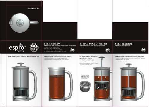 Το μηχάνημα μοιάζει με τις κλασικές μηχανές για τον γαλλικό καφέ, αλλά το Espro Press έχει ένα μικροφίλτρο δύο σταδίων που ισχυρίζονται πως διατηρεί το άρωμα και μειώνει την ‘λασπώδη’ αίσθηση του.