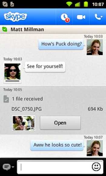 Με τη νέα έκδοση μπορεί κανείς να στείλει φωτογραφίες και βίντεο σε φίλους και οικογένεια μέσω Skype και συσκευής Android. Αυτό γίνεται δωρεάν και δεν έχει καμία διαφορά αν είναι κανείς συνδεδεμένος σε δίκτυ Wi-Fi ή με 3G data plan – φυσικά εσείς να προτιμήσετε το πρώτο αν είναι εφικτό.