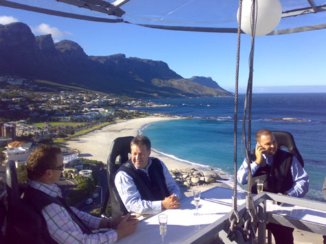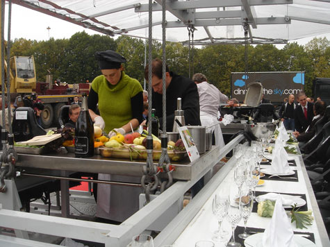 το Dinner in the Sky είναι μια κατασκευή που μπορεί να φιλοξενήσει 22 άτομα, έναν… chef και σερβιτόρους!