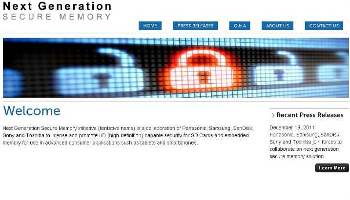 Μετά την πρωτοβουλία Full HD 3D των Panasonic, Samsung, Sony και X6D, οι ίδιες εταιρίες μαζί με τις Sandisk και Toshiba σχηματίζουν το πρότυπο Next Generation Secure Memory Initiative.