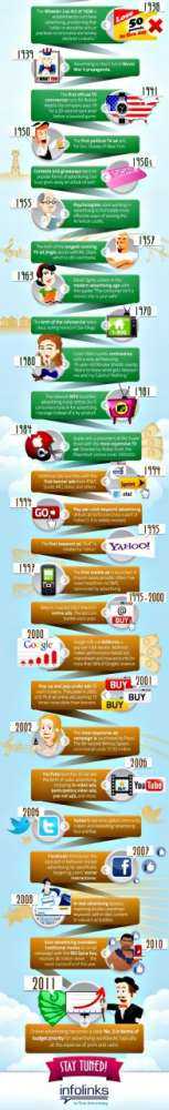 Στις παρακάτω εικόνες του infographic έχουμε ένα ωραίο timeline, που δημιούργησε η Infolinks και ένα ταξίδι στο marketing μέσα στο χρόνο…