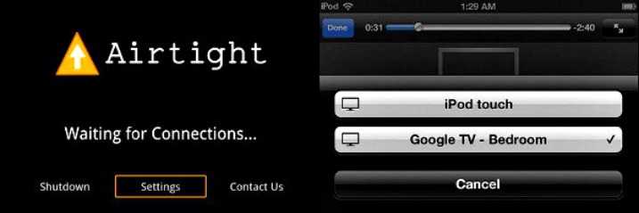 Ένας developer με το όνομα Yossie έχει βρει μια λύση που ονομάζεται Airtight. Το μόνο που κάνει κανείς είναι να εγκαταστήσει την app στην Google TV, να το συνδέσει σε μια iOS συσκευή και να streamάρει περιεχόμενο στο set top box ασύρματα.