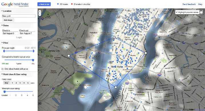 Ουσιαστικά ένα ενδιαφέρον και χρήσιμο εργαλείο και προέκταση του Google Hotel Finder tool που βγήκε το περασμένο καλοκαίρι. Γράφετε λοιπόν “Eiffel Tower” ή “Empire State Building” και δείχνει διαθέσιμα ξενοδοχεία στην περιοχή