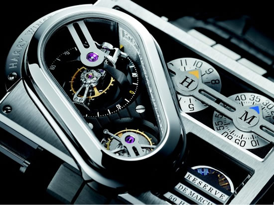 Το limited edition Histoire de Tourbillon 3 ρολόι μοιάζει να έρχεται από άλλες εποχής. Με τρία tourbillons σε μια τετράγωνη 65mm x 46mm θήκη. Λευκόχρυσος στα 18 καράτια και θήκη εξωτική – Zalium alloy metal case ! – με 50 ώρες ρεζέρβα και 30 μέτρα αντοχή σε βάθος.
